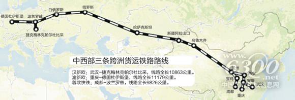 目前,依托西伯利亚大陆桥和新亚欧大陆桥,已初步形成西中东三条中欧班列运输通道。从始发城市来看,位居中西部的重庆、郑州、成都、武汉的班列最多。