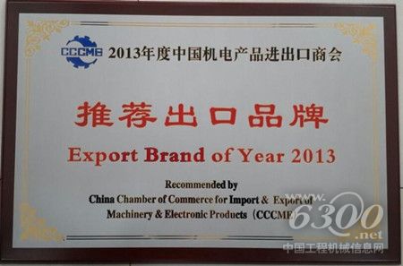 山推股份荣获“2013年机电商会推荐出口品牌”