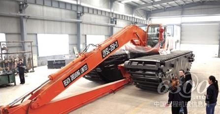 听说过水陆两栖动物,看到过水陆两用车,但是,小编真正看到水陆两用挖掘机,还是在滨州市金毅设备有限公司内。据了解,滨州制造的水陆两用挖掘机已经成功实现了出口海外。“我们自主研发的这台水陆两用挖掘机使用了新型的浮箱履带行走结构,克服了传统水陆两用液压挖掘机行走系统的不足。”4月18日,在位于高新区的滨州市金毅设备有限公司,副总经理常成慧介绍道。