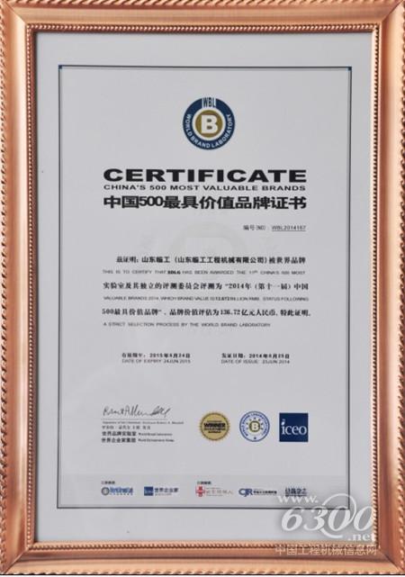 2014年(第11届)《中国500最具价值品牌》排行榜日前正式公布,迅速崛起的工程机械企业山东临工首次上榜,位居“品牌500强”第167位,中国工程机械行业第4位,世界品牌实验室评估其品牌价值达136.72亿元,并特别指出它是行业内营收增长最快的公司。这是权威机构以深度调研和数据分析的方式,首次对山东临工的品牌价值给予量化评估,并通过对比和排序,清晰地显示出山东临工的品牌实力与行业地位,及其在中国经济和主流人群的中的影响力。