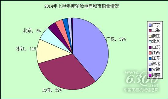 2014年上半年轮胎电商地域格局继续趋向多样化,上海、广东两个经济发达地区在电商地域分布中共占全国超过七成份额。曾居于电商领域“霸主”地位的一线城市北京,整个上半年销量以微弱差距落后于浙江。江西、山东发展迅猛,试图在轮胎电商市场“分多一杯羹”,由此可见未来轮胎电商的的区域竞争势必更加激烈。