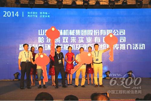 发布会上,高效节能环保挖掘机主发明人杨双来与全国30家主要经销商、代理商签约,现场签订62台销售合同,同时,将首批挖掘机钥匙交给客户。