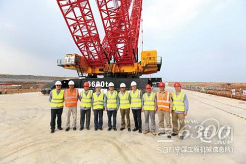 王炳华一行在CAP1400示范工程施工现场察看了1号机组核岛基坑钢筋绑扎过程,以及钢制安全壳和模块拼装场地、三一SCC36000A履带起重机组装调试等,随后听取了国核示范电站有限责任公司、国核联队、中核华兴公司、国家核电工程管理部关于现场施工情况的详细汇报,并在三一“全球第一吊”前合影留念。
