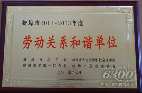 安徽合力蚌埠液力荣膺“劳动关系和谐单位”