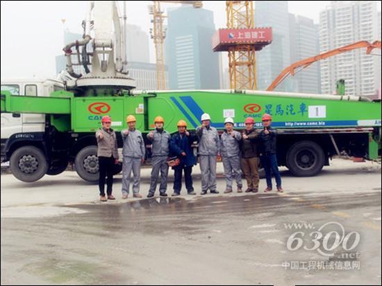 在项目施工现场,5台56米星马泵车大显神通,在持续满排量工作50多个小时里,表现出了它们应有的出料水平:均匀迅速,油耗低,泵体跳动小,极大的降低了施工方工作者的劳动强度,获得了施工方工人、项目组及泵车操作人员的一致好评!