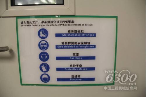 作为一个外来者,进入约翰迪尔车间必须要有五项装备,分别是防砸鞋、带侧护翼的安全眼镜、耳塞、防护手套和防撞帽,这既是对工人和参观者的人身保护,约翰迪尔严谨的过程管理由此也可见一斑。