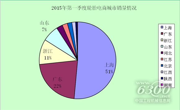 2015年第一季度轮胎电商地域格局继续趋向多样化,上海轮胎电商地域分布本季度占据全国超一半份额。曾居于电商领域“霸主”地位的一线城市北京,近几月销量均落后于广东、浙江、山东。其他省市如江苏、江西等地电商也发展迅猛,试图在轮胎电商市场“分多一杯羹”,由此可见未来轮胎电商的的区域竞争势必更加激烈。