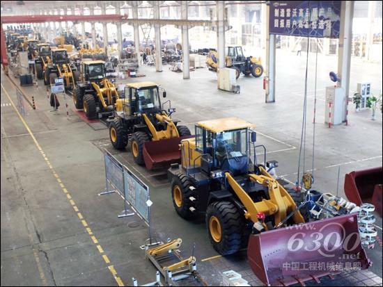 正在生产线上加紧生产的雷沃装载机