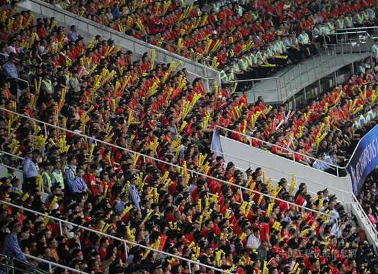 2015年,尽管工程机械行业遭遇严冬,但山东临工对足球事业的支持力度不减,“托举足球梦想”活动已经覆盖全亚洲,从泰国到沙特,从越南到澳大利亚……可以说有足球的地方就有临工黄,山东临工与广州恒大,已成为全亚洲球迷心目中最熟悉、最关注的中国品牌、中国元素。