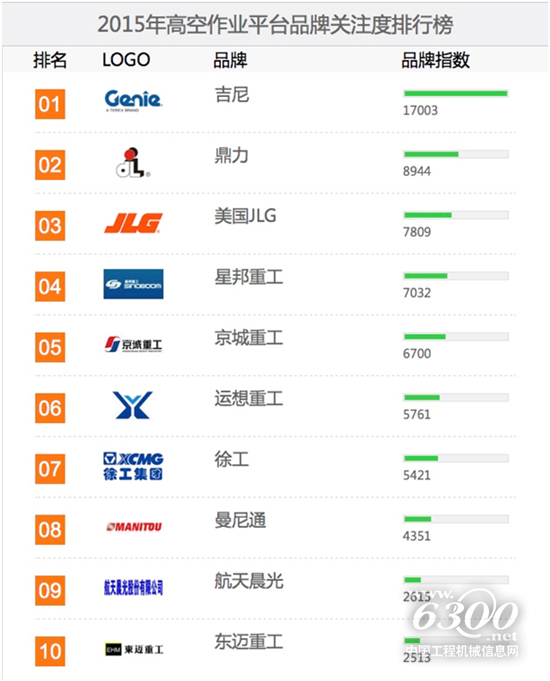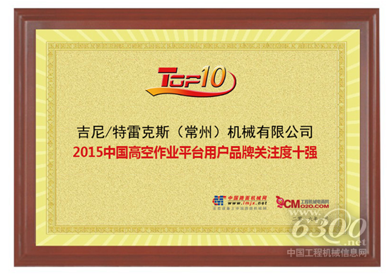 吉尼再登“2015中国高空作业平台用户品牌关注度十强”榜首
