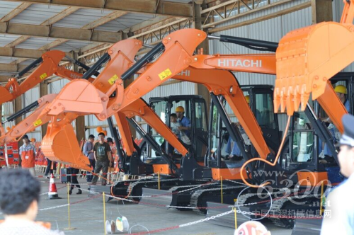 日立建机员工家属观看公司二十年前生产下线的第一台设备(1号机)表演