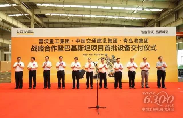 2016年8月12日,雷沃重工集团与中国交通建设集团、青岛港集团战略合作暨巴基斯坦项目首批设备交付仪式在雷沃重工隆重举行。本次交付的批量FL958G-ETX雷沃装载机将奔赴巴基斯坦“一带一路”旗舰项目——中巴经济走廊。雷沃重工集团董事长、总经理王桂民,中国交通建设集团华东区总经理王永强,青岛港集团副总裁张江南,中国路桥集团物资装备部总经理吴金海,青岛市黄岛区副区长孙大贵等领导出席仪式。