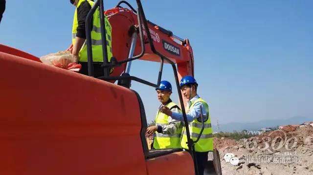 斗山工程机械(中国)有限公司总经理兼生产副总裁朴赞赫检查设备
