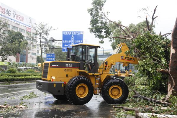 强台风灾害发生后,厦门厦工机械股份有限公司(简称“厦工”)立即启动应急救援系统,成立了由总裁白飞平带队的“抗台风应急救援小组“。当天,救援小组先后派出30余名工作人员,驾驶8台装载机在轮渡沿厦禾路拐莲前西路至会展中心一线、吕岭路沿线、龙山中路一带开展清除淤积物、移除倒塌树障等清理工作,确保上述主要路段、桥梁涵洞的正常通行。
