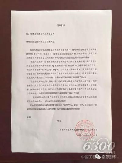 该工程的LBAMSG-1项目段施工,由中国建筑第六工程局有限公司京新高速第三项目部承建,值得关注的是为该路段高速公路提供摊铺所需沥青混合料的正是由南方路机GLB5000型沥青搅拌设备生产的。