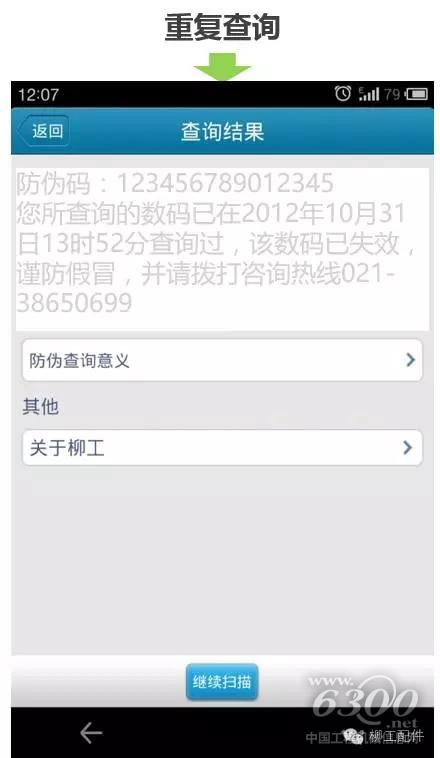 步骤3:显示查询结果,产品二维码的首次查询、重复查询、错误查询均有不同的查询结果。