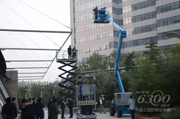 在互动交流环节,进行了高空作业平台试乘活动,在场嘉宾纷纷踊跃参与,亲身体验了吉尼高空作业平台超高的稳定性和便捷的操作。