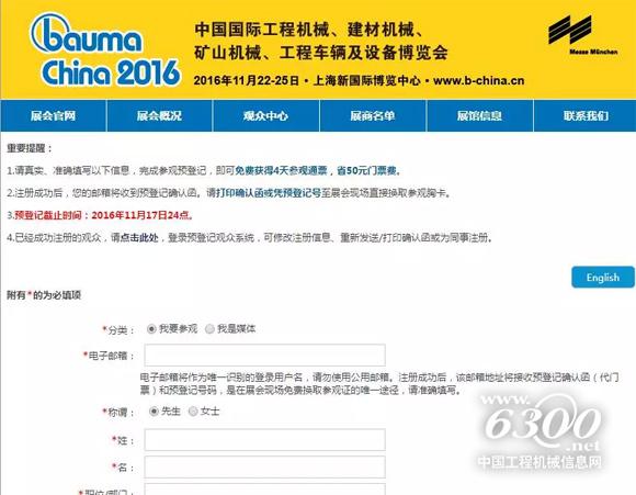 bauma China 2016(上海宝马展)2016年11月22-25日上海新国际博览中心预登记明日关闭!免费索票仅剩不到48小时,开幕仅剩6天。