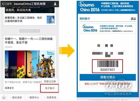 关注微信公众号,点击下方菜单【免费参观】-【电子胸卡】 ,即可随时查看您的电子胸卡。建议您截屏保存或者记录预登记号。