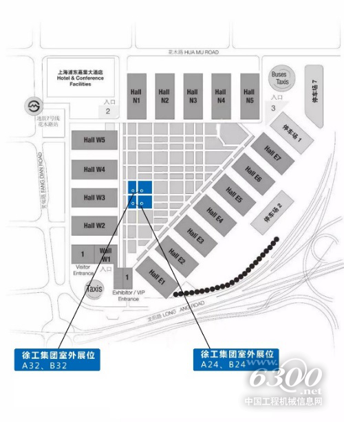 徐工集团连续8届成为室外展出面积最大展商,本届参展展位面积6160㎡,室外展位A24、B24、A32、B32,参展主机产品达70台,零部件及非实物展示45件/套,为历届展会规模最大、产品最齐全。