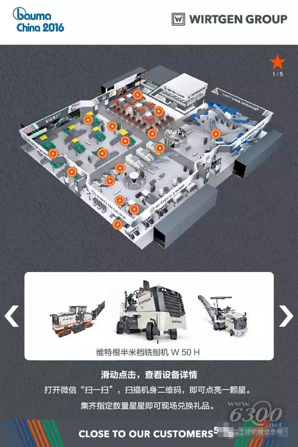 展会举办期间,维特根集团电子邀请函将增设导览图功能,观众们可以通过关注维特根中国微信公众号或现场扫码的方式获得维特根集团展馆电子导览图。在导览图中,维特根集团所有展出设备在现场的具体位置一目了然,您还可以轻松查阅亮点机型的详细介绍。