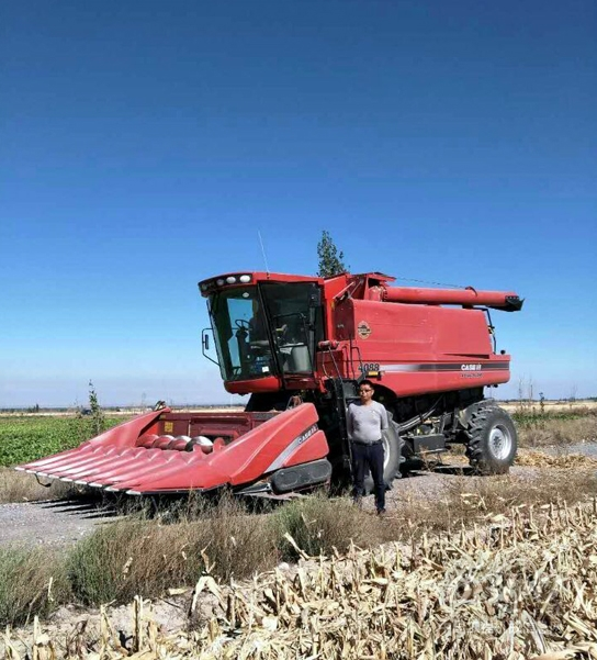 关俊辉,新疆伊犁人,热情爽朗,有着标志性的大嗓门。他进入农机行业时间不久,但是却是带领当地实现农业机械化的重要领头人。“大概四、五年前吧,每次到了收获季节,看着那么多的玉米棒子,我就想,能不能有个更先进的机器,能够真正解放咱们农民劳动力?”面对当地十几万亩的庄稼,关俊辉觉得,如果买台高效的收获机,不仅能减轻农民的工作量,高效收割也能为自己带来不错的受益。关俊辉说,他是个敢想敢干的人,随即,他便买了一台凯斯2366,加入了机收大军的队伍。