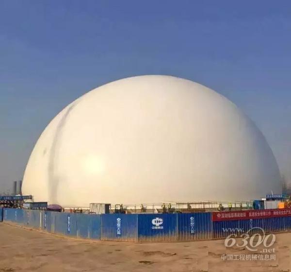 此次徐州大屯热电输煤系统工程——球型储煤仓项目,储煤总量7万吨,直径70米,现为全球最大直径球仓。此项目共有两个球仓,均采用全封闭煤场,气膜成形。目前,第一个球仓已吹膜成形,进入内部施工阶段。