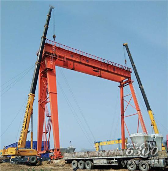 第一轮的比试是各自将重达65吨重的提梁机支腿吊至固定位置完成安装
