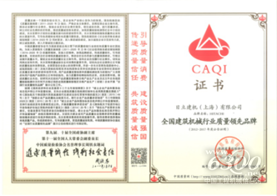 日前,由中国质量检验协会发起的2017年“全国行业质量领先品牌”展示公告工作落下帷幕,在各行业领域坚定履行质量承诺的优秀企业纷纷上榜,凝聚起共同建设“质量强国”的诚信力量。继在2016年被评为“全国建筑机械行业质量领先品牌”后,日立建机(上海)有限公司再次荣获此项殊荣,展现出深受政府、业界、客户和社会公众认可的标杆影响力。