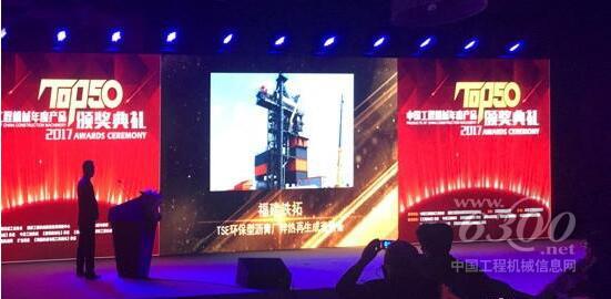 2017年3月27日,2017中国工程机械年度产品TOP50榜单正式揭晓,铁拓机械TSE系列环保型沥青厂拌热再生成套设备跻身年度产品TOP50榜单。