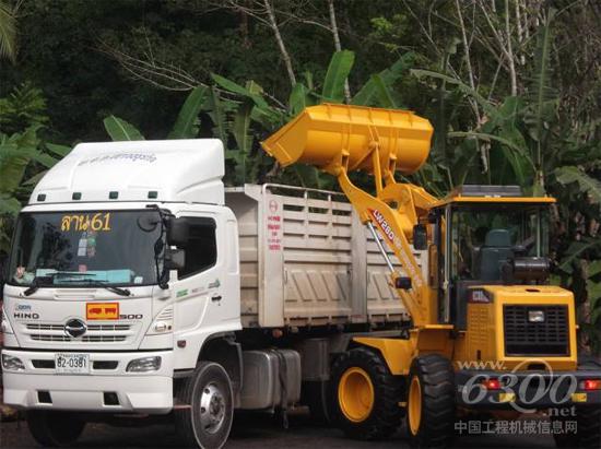 泰国运输粮食的货车比其他国家的货车高度高1m左右,所以客户提出要求,把装载机的标准臂长加长1.2m,这样装载机才能顺利把粮食倒在货车上。