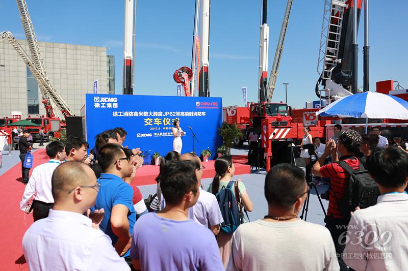 “V5,创意新概念,给人一极强的视觉冲击力!”面对徐工消防装备全新的产品、最新的外观形象,刚刚步入徐工展区的参观者就被眼前的“靓丽新秀”吸引了。“全能猛士” DG54M1全新的设计造型及强大的性能吸引了众多参会者停足驻步,细细打量。现场隆重的交车仪式上,被称为“石化勇士”的徐工首款大流量大跨距石化专用举高喷射消防车JP62S1首次向客户交付使用,凭借先进完美的支腿与臂架组合设计更是成为展区耀眼的“名星”,引得参会者仰首惊叹。“徐工V5系列消防车不仅仅是国五产品的切换,更是产品性能的一个飞跃提升,智能展收导航技术、车辆信息远程传输和远程故障诊断都得到了成熟应用。”徐工消防技术总监徐小东向客户讲解到。