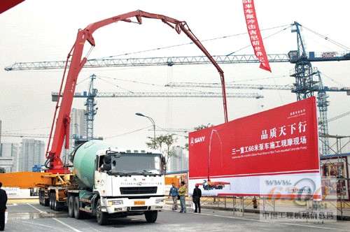 此次66米泵车的演示工地是新绿城住宅区,坐落于风景如画的钱塘江岸,是浙江省龙头房地产公司绿城集团兴建的一个高尚纯住宅项目。