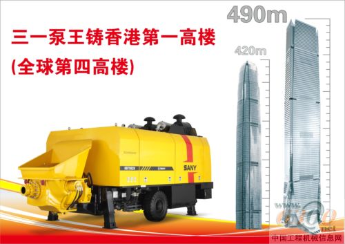 记者了解到,在香港,80%的高层建筑都是由三一设备泵送的。2002年,三一泵在香港国际金融中心创造了406米的单泵垂直泵送高度,赢得“中国泵王”的称号。此之,还包括新鸿基-元朗鸡地高层住宅群、将军澳55高档住宅楼等。