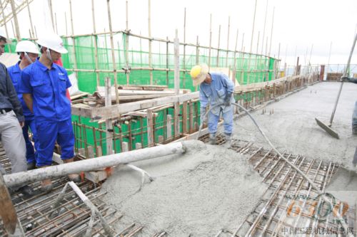6月25日上午,在香港中富机械有限公司董事长陈跃进的引领下,众多客户与凤凰卫视、湖南卫视等媒体的记者,搭乘施工电梯上到了环球金融中心490米高度的最顶峰。这里,身着工装的工人正忙碌地准备着,随着大楼底下三一混凝土泵的启动,高标号混凝土顺着管道而上,最终从顶楼的管道中喷薄而出,注入钢筋驻成的楼面。