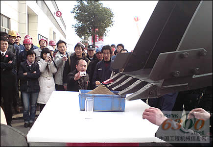 中国工程机械信息网(kfz9i.cn)记者现场获悉,中国挖掘机协会秘书长陈正利先生以及三一重工向文波等领导和嘉宾亲自为SY205C-8挖掘机揭幕。随后三一重机公司组织媒体参观生产线并到调试现场观摩,其中调试场观摩环节让许多媒体印象深刻,只见操作手上机鸣笛,向观众做致意动作,挖机作各种集体动作,灵活的机臂竟然能够用大号毛笔书写三一的英文“SANY”,更神奇的是,挖掘机的挖斗可以准确的铲起沙地里的一个生鸡蛋,操作手的技术令人叹服之余,也显示出了三一重机在控制技术上的一丝不苟,精益求精的态度。