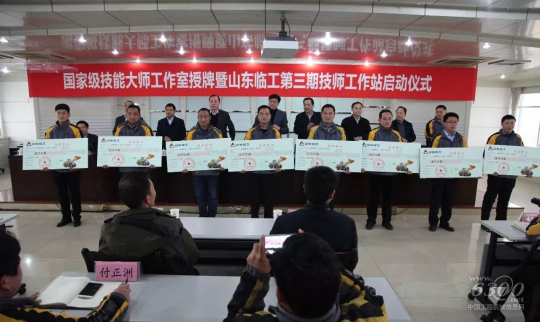 仪式上,山东临工正式启动第三期技师工作站项目建设,同时对邱峰、马恒良、张在才、刘敬鹏、秦立山、王亮亮、祝令新、刘博等8位高技能人才代表进行了表彰奖励。国家级技能大师工作室领办人邱峰作了表态发言。