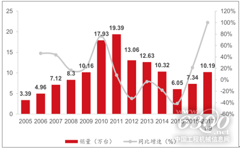 国内工程机械行业自2016年四季度回暖以来,行业“晴雨表” 挖掘机月销量屡超预期。工程机械行业上一轮高增长可以追溯至2008年政府四万亿的投资刺激,以挖掘机为例,国内挖掘机年销量一度攀升至逾19万台。2012年,行业需求急速下滑,并随之进入连续5年的深度调整期,至2015年挖掘机全年销量跌至6.05万台,仅为高峰期约 30%。2016 年四季度以来,行业筑底回暖趋势确定,挖掘机月销量屡超预期。分析需求高增长原因,主要包括以下几点。首先,行业历经 5 年深度调整期,期间被抑制的需求在基建投资增速多年保持两位数增长、采矿业景气度回升等多因素影响下正得到逐步释放。其次,从更新需求的角度考虑,截止至 2016 年年末,国内挖掘机保有量已达到 150 万台左右,加之 2016 年 4 月正式实施的《关于实施国家第三阶段非道路移动机械用柴油机排气污染物排放标准的公告》,排放要求不达标的产品将面临强制淘汰,从而刺激了更替需求。同时,供给侧改革影响下采矿业景气度有效提升,大挖需求量获得提振。