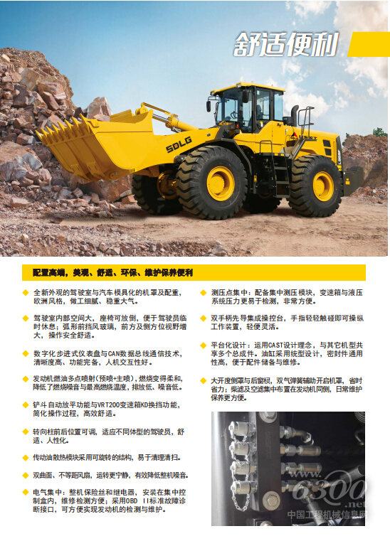 山东临工L968F装载机是“F系列”产品主打机型,是一款全新外观的高配长轴距节能型装载机。L968F采用山东临工新一代节能技术,配备三阶段电控发动机和变量控制转向系统,综合节能20%以上。该产品实现了大掘起力和高可靠性的完美结合,轴距长,掘起力与牵引力大,可铲掘金属矿石、金属矿粉、大型石材等物料,为矿山码头等重工况量身定制。