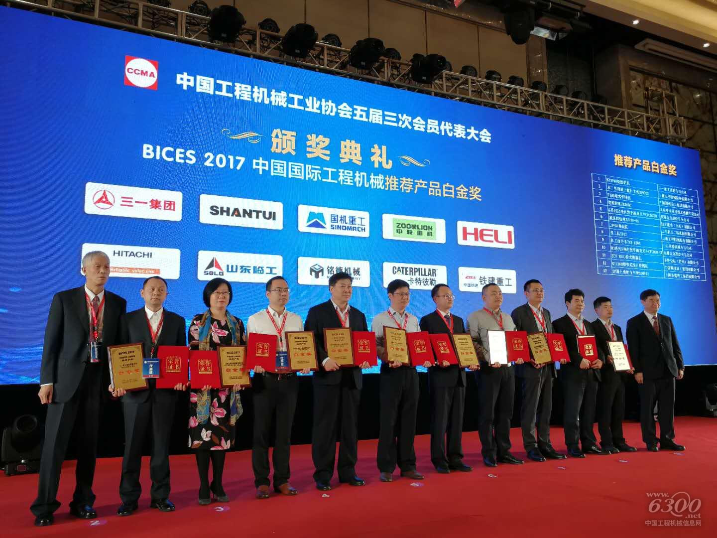 4月12日,在中国工程机械工业协会五届三次会员代表大会暨第十六届中国工程机械发展高层论坛上,中国工程机械工业协会祁俊会长、苏子孟常务副会长兼秘书长颁发了2017中国国际工程机械创新、推荐产品奖。