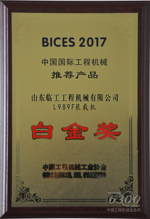 会议期间举行了“BICES 2017中国国际工程机械创新、推荐产品”颁奖典礼,山东临工装载机L989F荣获“推荐产品白金奖”,挖掘机E6460F荣获“推荐产品金奖”。