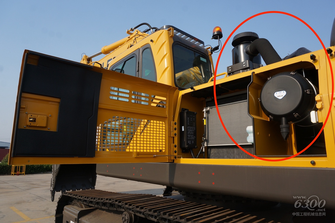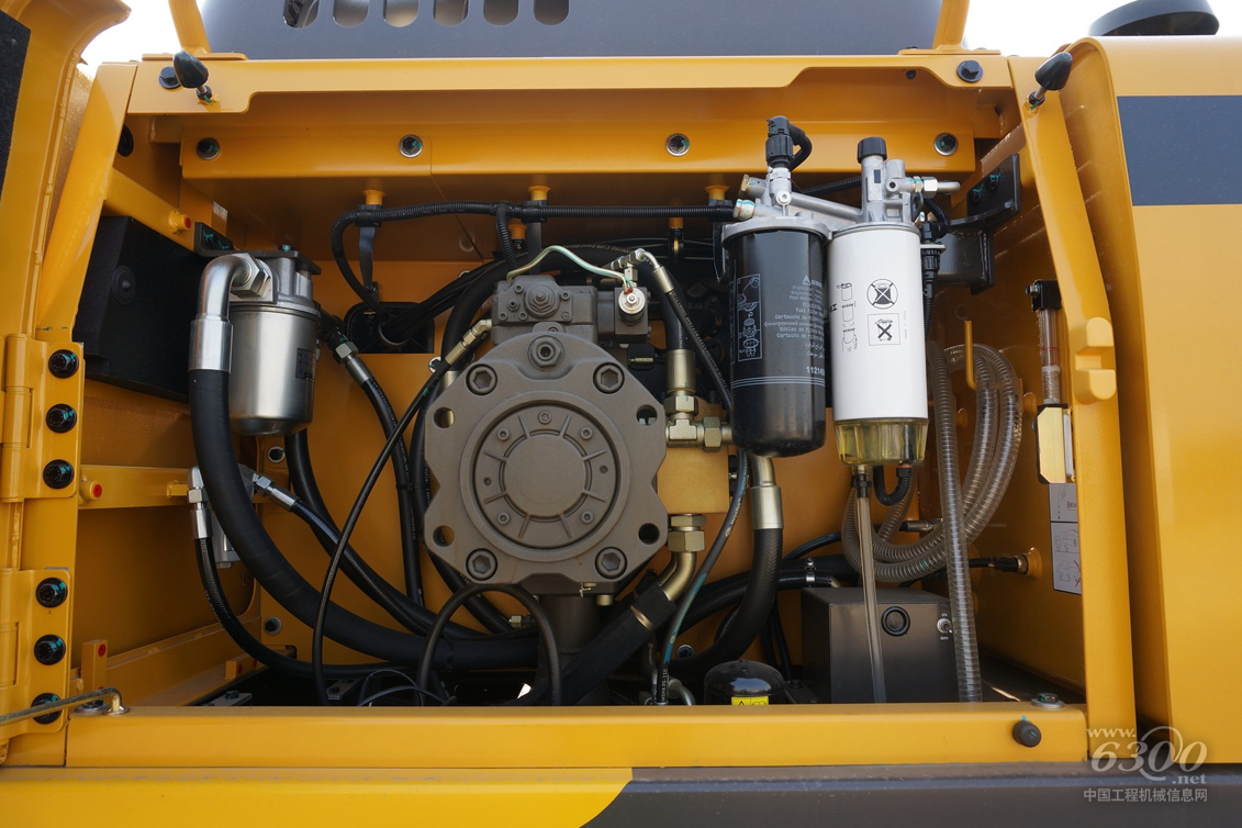 在山东临工E6460F的左机罩集中布置了机滤、空滤、电气集中控制盒,让操作手站在地上即可维护保养,简单方便。右机罩则是集中布置了油类滤清器、主泵测压口、燃油加油泵,这些都让保养、检测、加油变得更加便利。