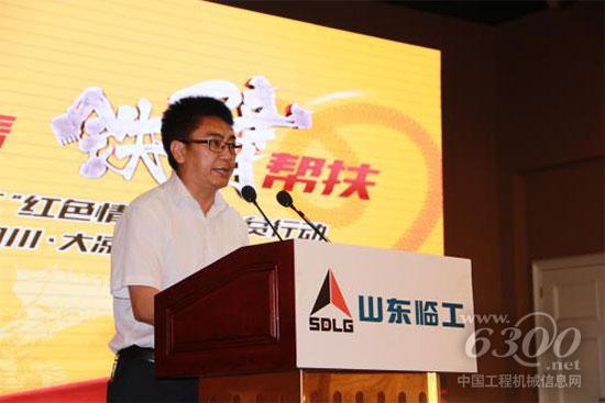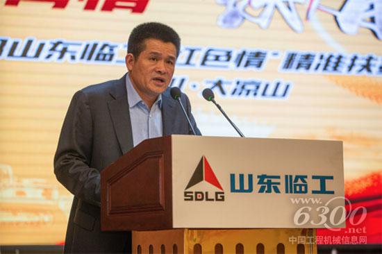 (山东临工工程机械有限公司副总经理史生勇为山东临工“红色情”精准扶贫大凉山分队授旗)