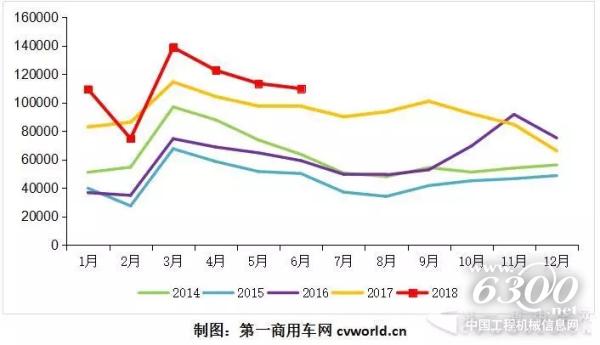 首先,市场有五次刷新了月度销量纪录,分别是1月、3月、4月、5月和6月,3月份市场还以13.89万辆的销量,创造了重卡市场月度销量的历史新高;其次,2018年上半年有五个月的销量都是同比增长,只有一个月(2月份)的销量是同比下降的。而且,这几个月的增长,还是在去年同期销量基数很高的前提下取得的;第三,受去年牵引车大量透支的利空影响以及基建工程需求火爆的利好刺激,牵引车市场持续下滑,工程车市场高速增长。