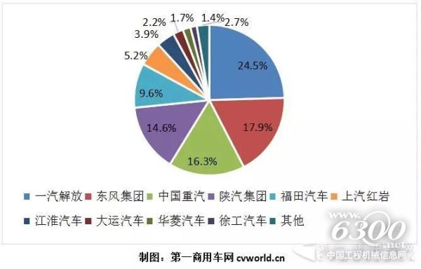 中国重汽6月份销售各类重卡1.76万辆,与去年同期基本持平;1-6月累计销售10.94万辆,同比增长10%,市场份额为16.3%。陕汽6月份销售重卡约1.7万辆,同比增长2%,其中国内销售就超过1.5万辆;今年上半年,陕汽重卡累计销售9.8万辆,同比增长12%,市场份额为14.6%,继续稳居行业前四。