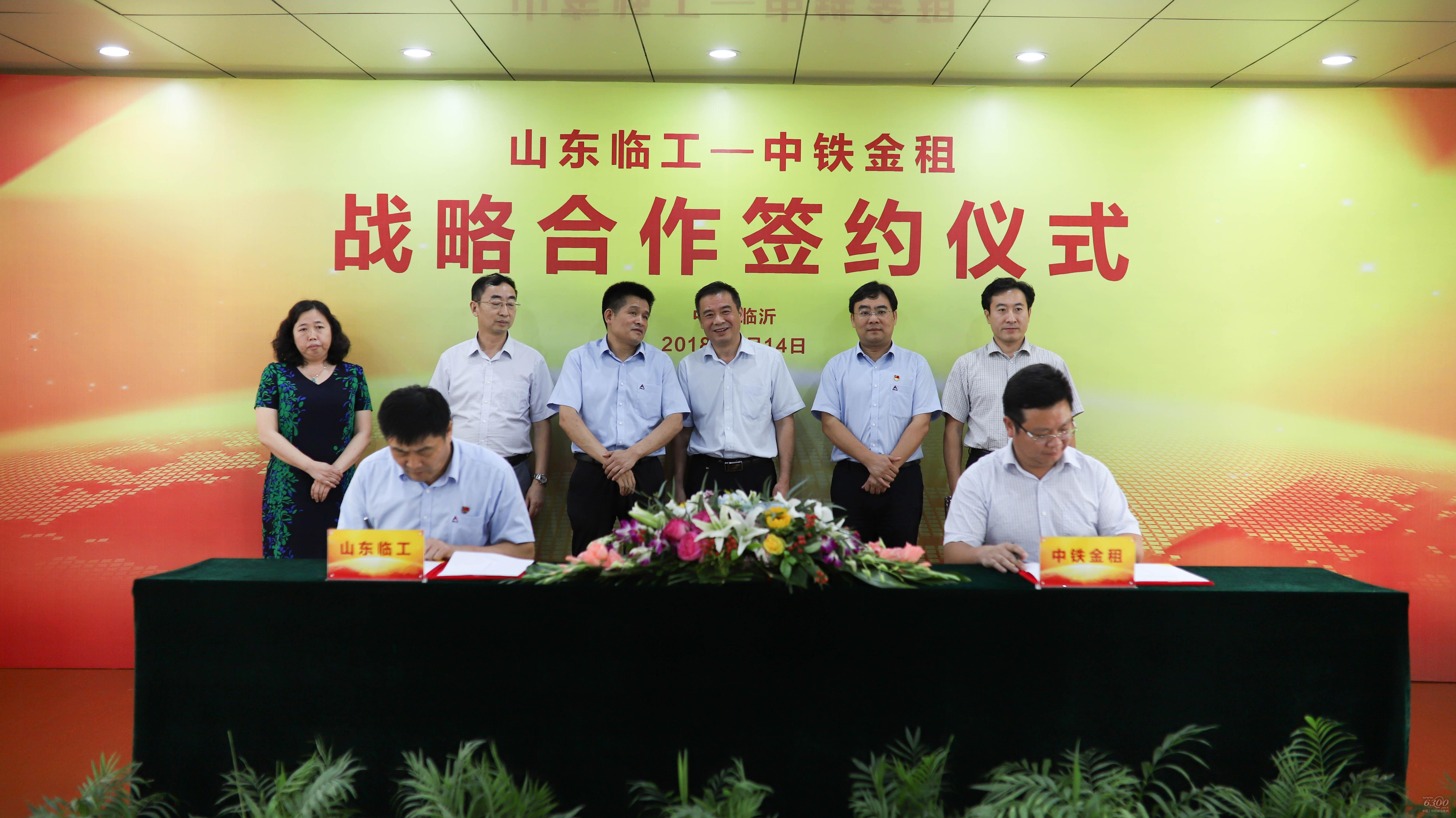 在双方领导的共同见证下,山东临工财务总监王者森、中铁金租副总经理付必茂分别作为代表在战略合作协议上签字。