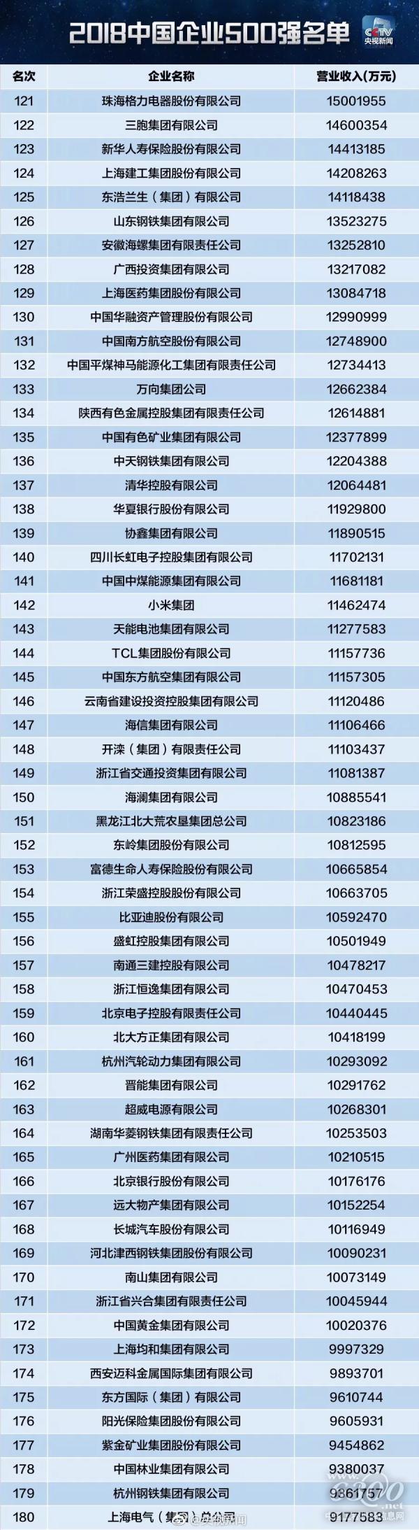 中国企业联合会发布的《中国500强企业发展报告(2018)》显示,制造业大企业表现总体好于服务业大企业。2018中国企业500强中有253家制造企业入围,比上年增加8家;制造企业营业收入、净利润、资产、净资产、纳税额、员工数等6个指标在全部500强中的占比均有不同程度提高。