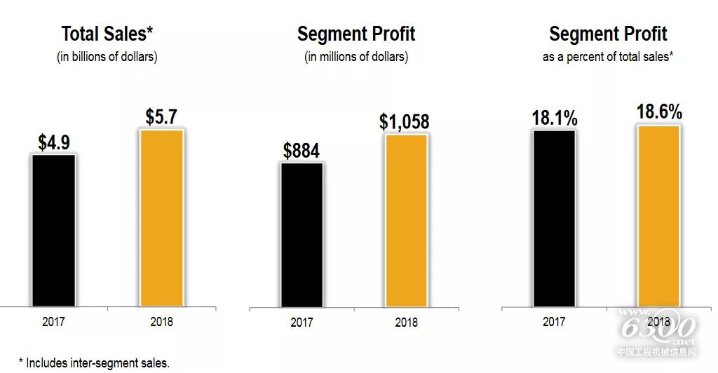 建筑机械(Construction Industries)板块第三季度销售表现:整体销售额达到57亿美元,同比增长16%。利润情况同比增长20%,利润率达到18.6%。