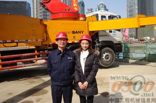 三一上海分公司服务经理张斌(左)与记者