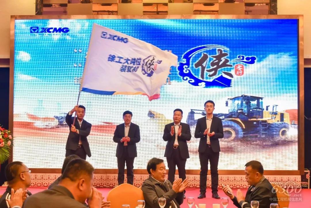 徐工大吨位装载机侠客行的旗帜在山东站闭幕式上成功交接给四川成都